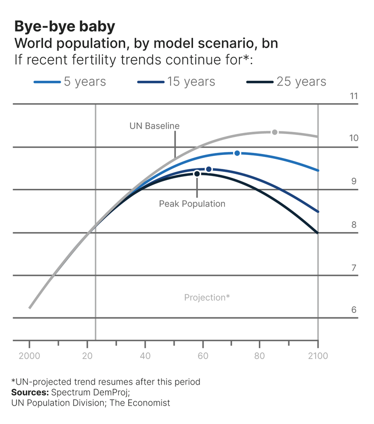 Figure 2: Forecasts indicate a global population decline, with developed economies projected to experience the most significant impact first (Source: The Economist)