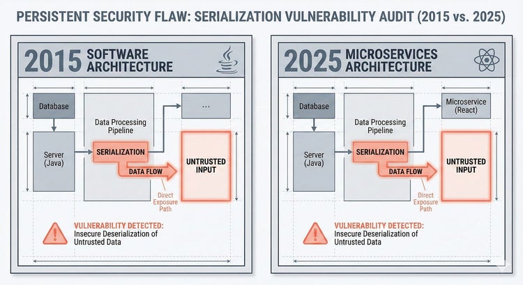 • The ecosystem never learns collectively: Java shops learned (painfully) about gadget chains and ObjectInputStream. However, that institutional knowledge didn’t necessarily transfer to Node.js/React developers building RSC implementations a decade later.