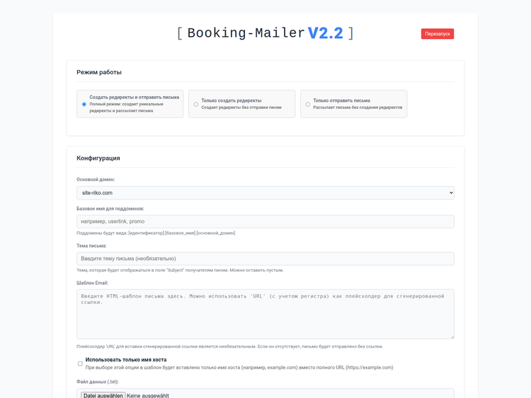 Website 3: Booking-Mailer V2.2 (“Менеджер Редиректов и рассылок”)