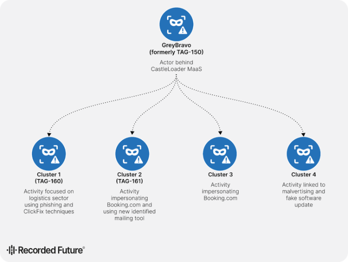 Through continued monitoring, Insikt Group has identified multiple clusters of activity linked to GrayBravo, reinforcing the assessment that the threat actor is operating a MaaS ecosystem (see Figure 1). This report details the tactics, techniques, and procedures (TTPs) associated with these clusters, believed to represent potential GrayBravo customers or affiliates. More specifically, Insikt Group identified four clusters linked to GrayBravo’s CastleLoader activity: one targeting the logistics sector (TAG-160), another using Booking.com-themed lures across a wider range of victims (TAG-161), a third also impersonating Booking.com but independent from the previous group, and a fourth distributing CastleLoader through malvertising and fake software updates.