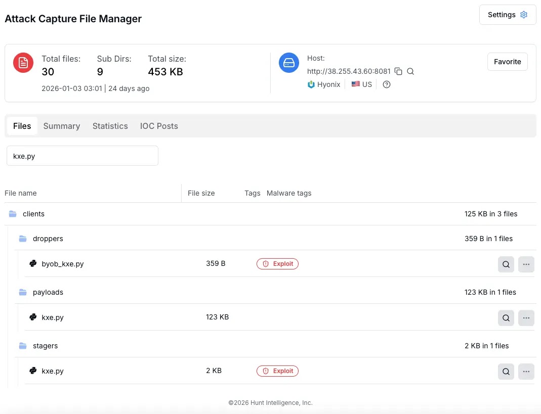 Hosted by Hyonix in the United States, the infrastructure contained a full collection of droppers, stagers, and post-exploitation modules that enable attackers to maintain control over compromised machines.