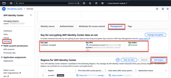 In this post, you learned how to extend your access to AWS through IAM Identity Center across multiple AWS Regions using multi-Region replication. To replicate your Identity Center instance to additional Regions, you need a multi-Region KMS key, updated IdP configuration, and network access to the new regional endpoints.