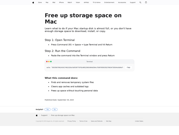 - macOS Storage Cleaning: Used counterfeit prompts mimicking macOS system optimization to trick users into executing encoded terminal commands