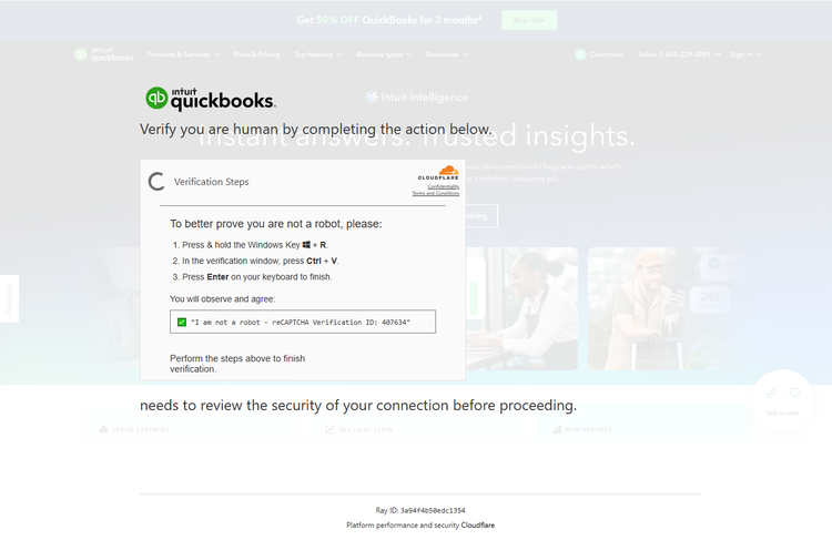 The infection chain begins when a victim lands on a ClickFix landing page. The page presents a fraudulent human-verification interface (see Figure 3) that instructs the victim to complete specific “verification” steps.